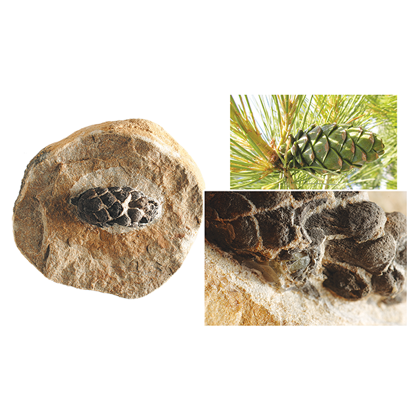 Yaşayan fosillər təkamül nəzəriyyəsinin mərhələli inkişaf iddiasını təkzib edən fosillərdir. Bu fosillərin yaşayan fosil adlandırılmasının səbəbi yüz milyonlarla il yaşlarına baxmayaraq, dövrümüzdəki nümunələri ilə tamamilə eyni olmalarıdır. Bu faktı göstərən nümunələrdən biri də şəkildəki təqribən 28-23 milyon illik şam qozası fosilidir.
